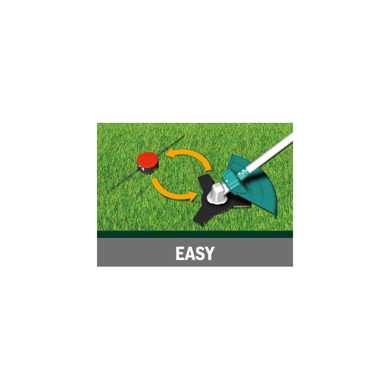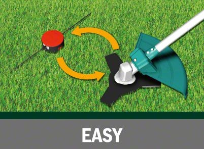 - Einfache Wahl zwischen einer Spule mit sehr starkem Schneidfaden und einem Messer