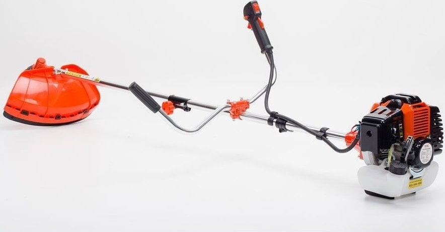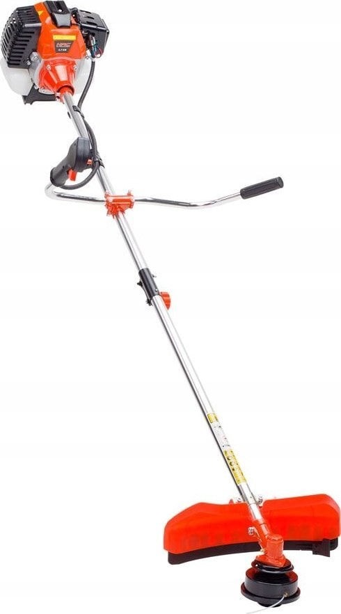 Die Motorsense ist mit einem verstellbaren V-Griff für einfaches Manövrieren und einem Schultergurt ausgestattet. Dank der Verstellmöglichkeit lässt sich die Neigung des Griffs an die Körpergröße des Benutzers anpassen.