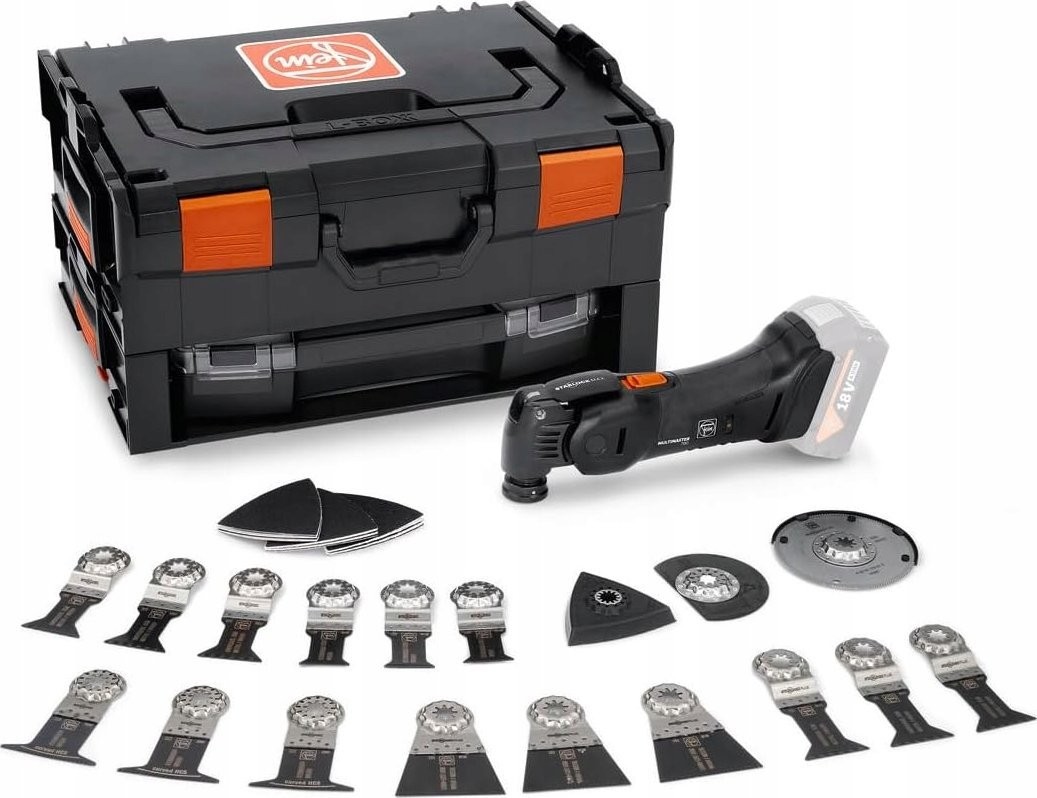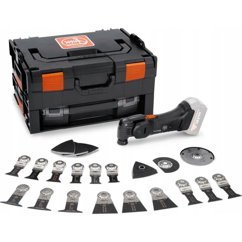 - Oszillator – Akku. 18-V-FEIN-PowerDrive-Motor: extrem leistungsstark und nahezu unermüdlich, bürstenloser Hochleistungsmotor mit extremer Belastbarkeit. Mit über 30 Zubehörteilen im Kunststoff-Werkzeugkoffer i-Boxx – zum Schneiden von Holz und Metall sowie zum Schleifen. Mobiles Arbeiten mit dem L-BOXX-System. Kompatibel mit AMPShare/Bosch Professional 18-V-Akkus.