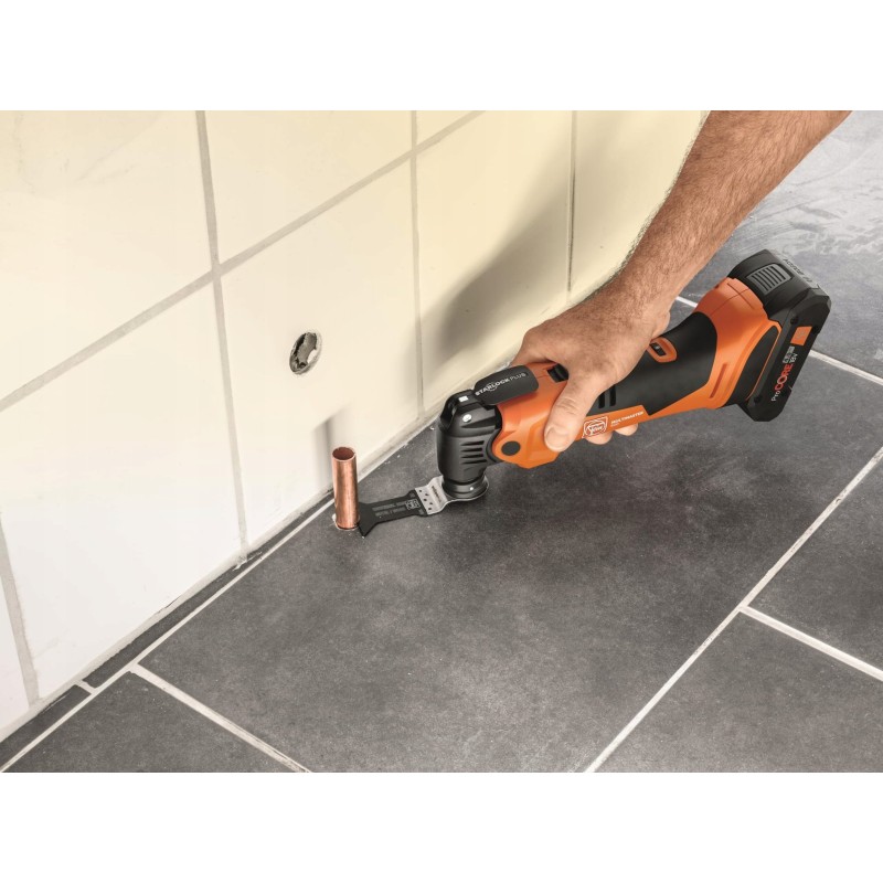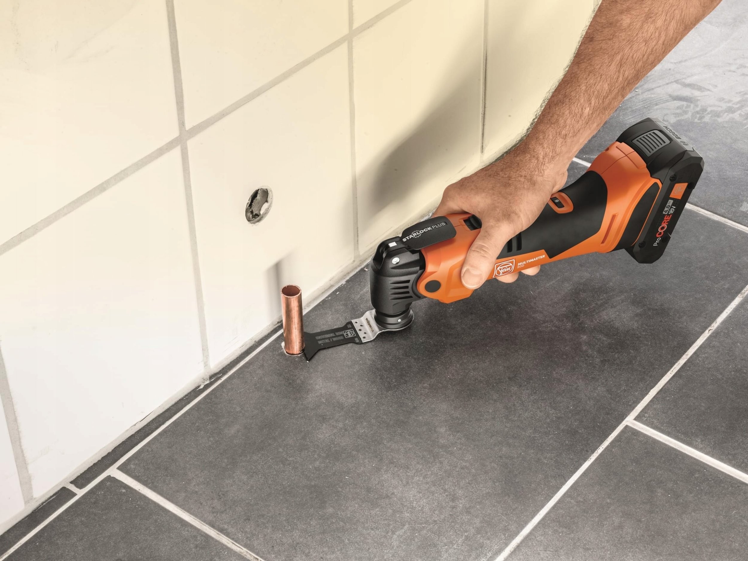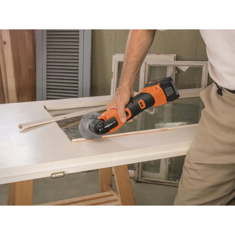 - Technische Daten: Spannung 18 V, Kapazität 4 Ah, StarlockMax-Werkzeugaufnahme, QuickIN-Werkzeugwechsel, Schwingungsamplitude 2 x 2,0°, Drehzahl 10.000–19.500 min-1.