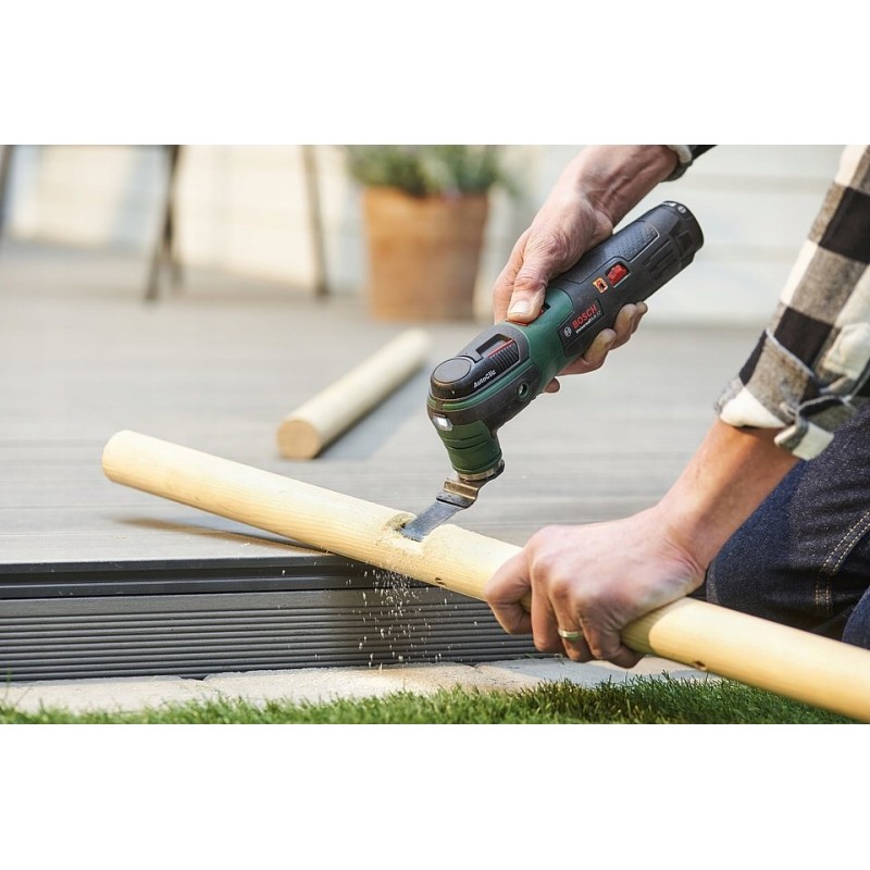 Egal, ob du bohrst, schneidest, reinigst, polierst oder schleifst – du kannst sicher sein, dass dieses Akku-Multifunktionswerkzeug UniversalMulti 12 Solo von Bosch sich für viele verschiedene Aufgaben bewährt! Das Gerät verfügt über einen leistungsstarken Motor mit elektronischer Drehzahlregelung und einen komfortablen Softgrip-Griff, der für hohen Bedienkomfort sorgt.