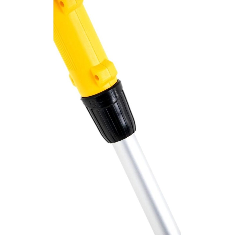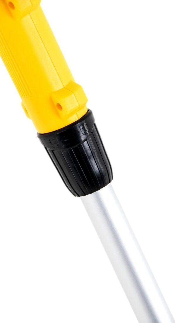 Der Benzin-Rasentrimmer (Rasenmäher) mäht das Gras mit einem Schneidkopf, der sich mit hoher Geschwindigkeit dreht. Der Motor des Rasenmähers wird mit Benzin oder Diesel betrieben. Das Gerät wird durch Drücken des Startknopfes am Hauptgriff gestartet. Der Rasenmäher ist mit einer Schnitthöhenverstellung, einem klappbaren Griff und einem zusätzlichen Hilfsgriff für mehr Arbeitskomfort ausgestattet.