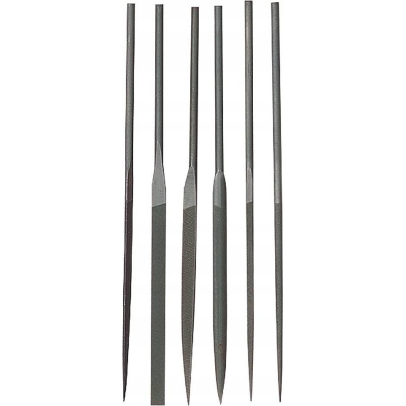 - 1 Flachfeile mit 1-Zahn-Schliff, 1 Flachfeile mit 2-Zahn-Schliff, 1 Halbrundfeile, 1 Rundfeile, 1 Vierkantfeile, 1 Dreieckfeile