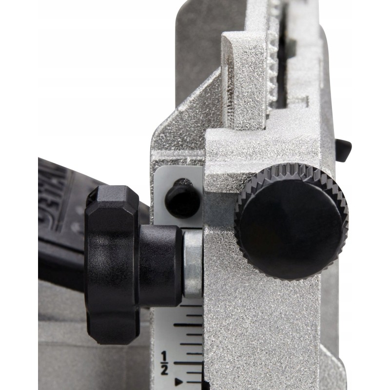 Die Fräse ist mit einem modernen Zahnradmechanismus ausgestattet, der eine präzise vertikale Einstellung sowie die Führung ermöglicht. Diese innovative Lösung gewährleistet dem Anwender die volle Kontrolle über den Fräsprozess, was zu hervorragenden Arbeitsergebnissen führt.