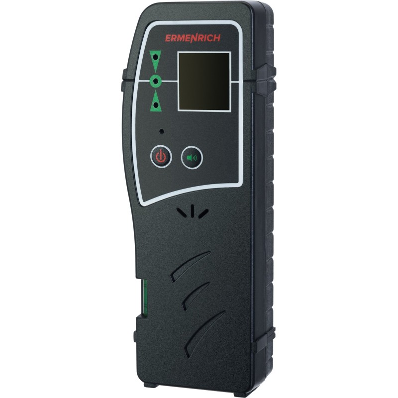 Der Laserdetektor Ermenrich LR30 hilft dabei, die Position des Laserstrahls von einer Wasserwaage oder einem Messgerät aus bei schlechter Sicht oder aus großer Entfernung zu bestimmen. Der Detektor erkennt rote und grüne Strahlen. LED-Anzeigen erleichtern die korrekte Installation des Geräts, sodass der Laserstrahl präzise auf den Sensor trifft.