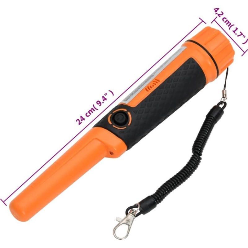 - Einfache Bedienung: Der Detektor kann zum Aufspüren von Metallen wie Eisen, Silber und Kupfer verwendet werden. Der Pinpointer ist leicht und verfügt über einen einfach zu bedienenden Ein-/Aus-Schalter (ON/OFF). Bei Erkennung eines metallischen Objekts werden ein akustisches Signal und eine Vibration ausgelöst.