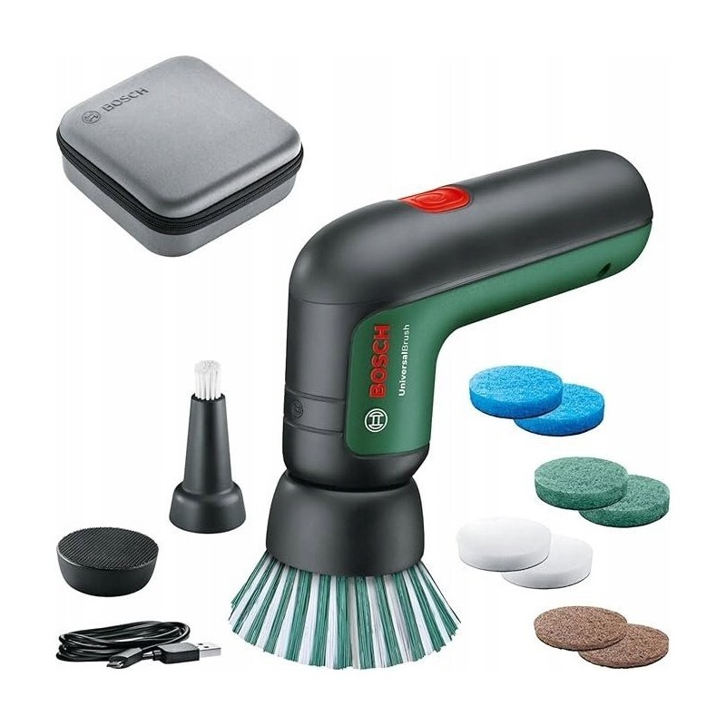 Die Akku-Reinigungsbürste Bosch UniversalBrush ist ein modernes Werkzeug, das sich hervorragend für jeden Haushalt eignet. Dank des vielfältigen Zubehörs entfernt sie sowohl leichte als auch hartnäckige Verschmutzungen effektiv. Ideal für die Reinigung von Fliesen, Gartenmöbeln, Backöfen, Töpfen, Pfannen und Duschkabinenfenstern, vereint diese Bürste Effizienz und Vielseitigkeit.