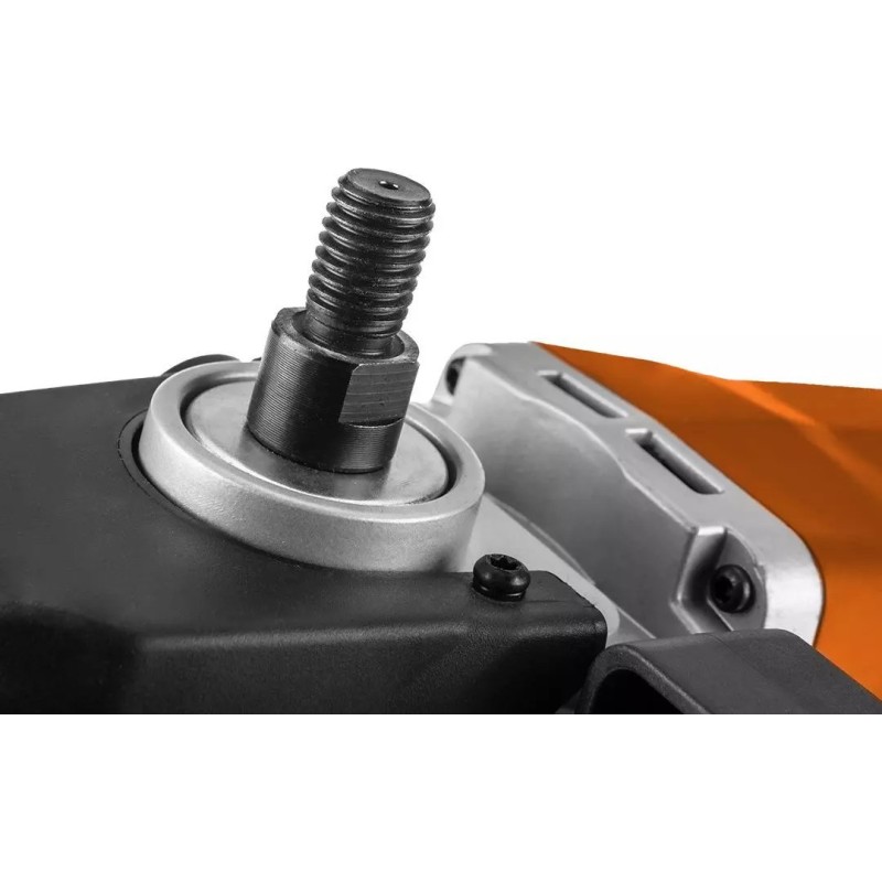 Der ergonomische D-Griff sorgt für eine einfache Handhabung des Geräts. Diese Konstruktion ermöglicht eine 100-prozentige Kontrolle über das Werkzeug. Die Poliermaschine wird im Set auch mit einer praktischen Staubschutzhaube angeboten.