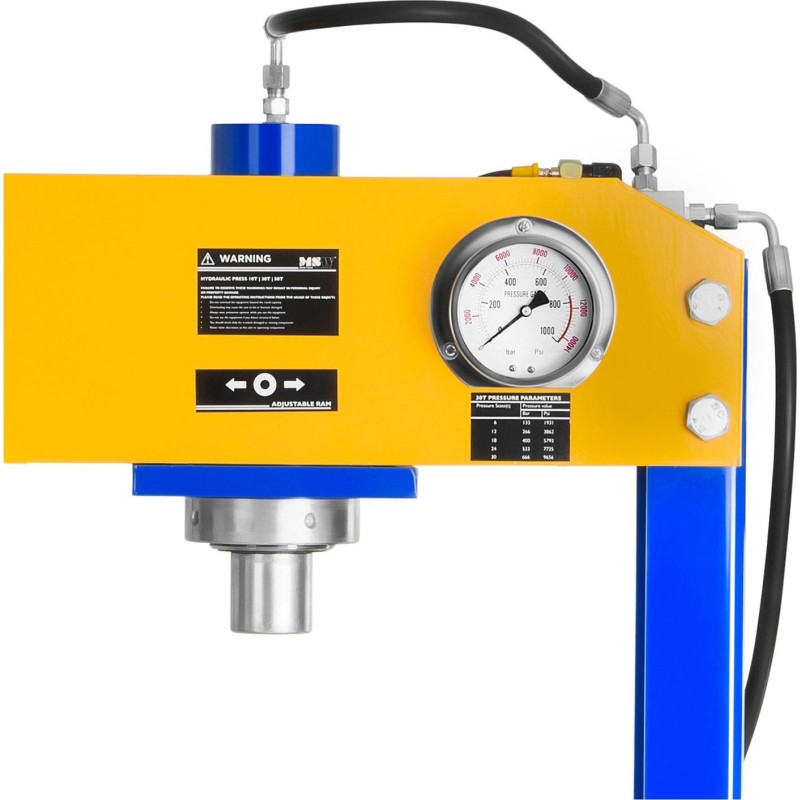 Die hydraulisch-pneumatische Presse der Marke MSW Motor Technics mit einer maximalen Presskraft von 50 Tonnen ist ein Gerät, das in Industriebetrieben, Werkstätten, Garagen, Servicebetrieben und Autohäusern zum Einsatz kommt. Das Gerät eignet sich hervorragend zum Formen, Biegen und Richten von Hartmetall und ermöglicht zudem die einfache Montage und Demontage von Zahnrädern, Lagern, Naben oder Buchsen. Die robuste, vollständig geschweißte Konstruktion gewährleistet eine hohe Lebensdauer des Geräts. Dank der vom Hersteller eingesetzten modernen technischen Lösungen verläuft die Arbeit mit dem Modell MSW-WP-50T-P sehr effizient. Die pneumatische Steuerung erhöht die Geschwindigkeit und Effizienz der Arbeitsabläufe und minimiert gleichzeitig die Ermüdung des Bedieners. Die hydraulische Steuerung sorgt für höhere Präzision und hohe Empfindlichkeit.