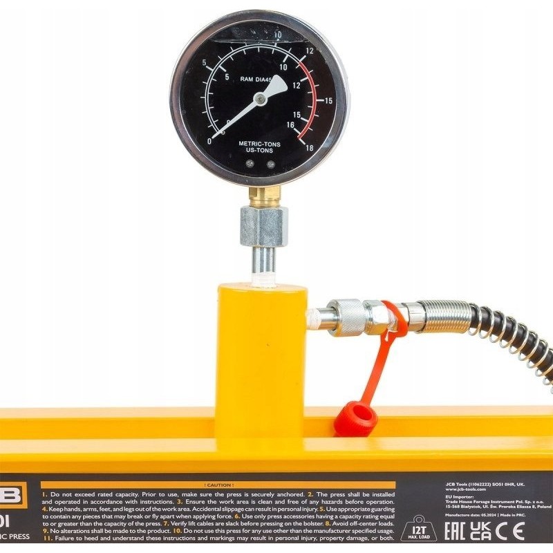 JCB Niedrige Hydraulikpresse mit Manometer und 12-Tonnen-Pumpe