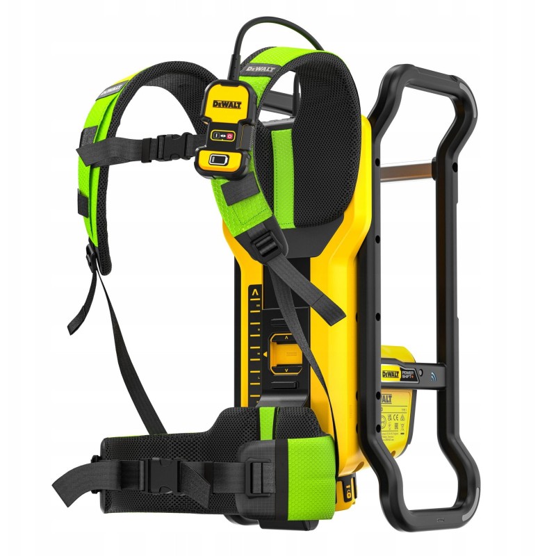 Der DeWalt-Rucksackvibrator zeichnet sich durch ein vollständig verstellbares Tragesystem aus, das eine perfekte Anpassung an den Benutzer gewährleistet. Die Bedienelemente können auf jeder Seite des Tragesystems angebracht werden, was die Flexibilität und den Bedienkomfort erhöht. Der integrierte Rahmen erleichtert das Greifen des Geräts aus verschiedenen Richtungen und schützt zudem den Akku, wodurch dessen Widerstandsfähigkeit gegenüber rauen Arbeitsbedingungen erhöht wird.
