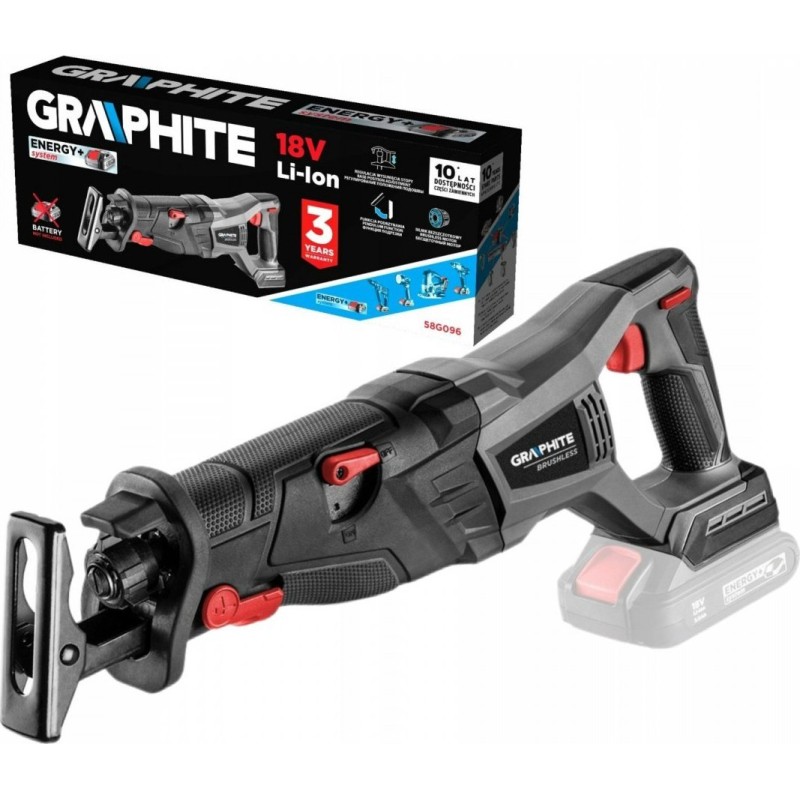 SET: BRUSHLESS-AKKU-STICHSÄGE ENERGY+ 18 V, GRAPHITE 58G096 + AKKU-LADEGERÄT ENERGY+ GRAPHITE 58G002 + AKKU ENERGY+ 18 V, LI-ION 4,0 Ah GRAPHITE 58G004