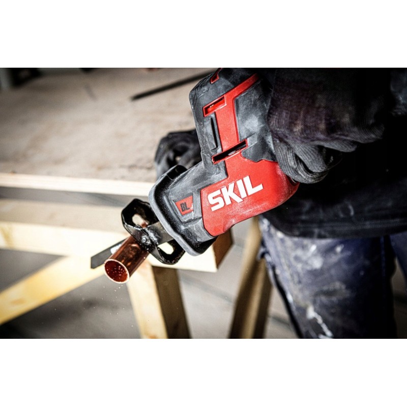 Die sehr handliche und leistungsstarke Akku-Säbelsäge 20V Max (18V) Modell 3475 von SKIL bewältigt alle anspruchsvollen Schneidarbeiten in Holz, Stahl, Nichteisenmetallen oder Kunststoffen (für die Bearbeitung des jeweiligen Materials muss das entsprechende Zubehör ausgewählt werden).