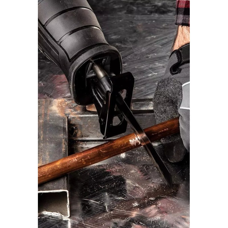 Beim Schneiden von Metallprofilen oder -rohren ist zu beachten, dass diese Materialien wesentlich härter sind als typische Spanplatten, Bretter oder Äste. Je nach Modell kannst du sogar mit einer Schnitttiefe von mehreren hundert Millimetern rechnen. Ähnlich wie bei Bohrmaschinen und anderen Elektrowerkzeugen lässt sich die Hubgeschwindigkeit von Säbelsägen über einen präzisen Auslöser steuern. Mit dessen Hilfe können Sie die Geschwindigkeit an die Härte des Materials, die Art des Sägeblatts oder Ihre Fähigkeiten anpassen.
