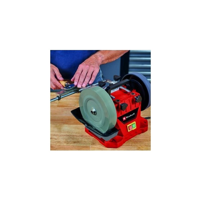 - Die Nassschleifmaschine Einhell TC-WG 200 eignet sich hervorragend für das Nassschleifen. Dank des 125-W-Motors erreicht die Schleifscheibe eine Drehzahl von 110 Umdrehungen pro Minute – ideal für das präzise Schleifen verschiedener Werkzeuge.