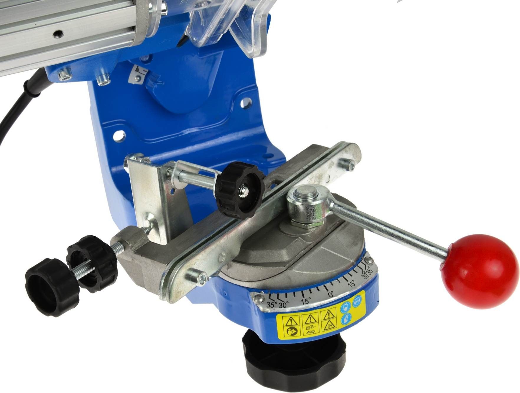 Das Gerät sorgt für schnelles und präzises Schärfen. Spannvorrichtung mit einstellbarem Winkel von 0 bis 35° nach links oder rechts. Geeignet für alle gängigen Kettensägenketten. Produktmerkmale: leistungsstarker 230-W-Induktionsmotor, luftgekühlt einstellbarer Schleifwinkel mit Skala im Bereich von 0 bis 35° komfortabler Führungsgriff Arbeitssicherheit durch Befestigung der Schleifmaschine am Tisch mittels Schraube Tiefenanschlag erhöht die Schleifpräzision geeignet zum Schleifen von Ketten für Benzin- und Elektrokettensägen Technische Daten Versorgungsspannung: 230 V / 50 Hz Motorleistung: 230 W Motordrehzahl: 3000 – 3500 U/min Einstellbereich des Schleifwinkels: 0 – 35° Scheibenabmessungen: 145 x 22,3 x 3,2 mm