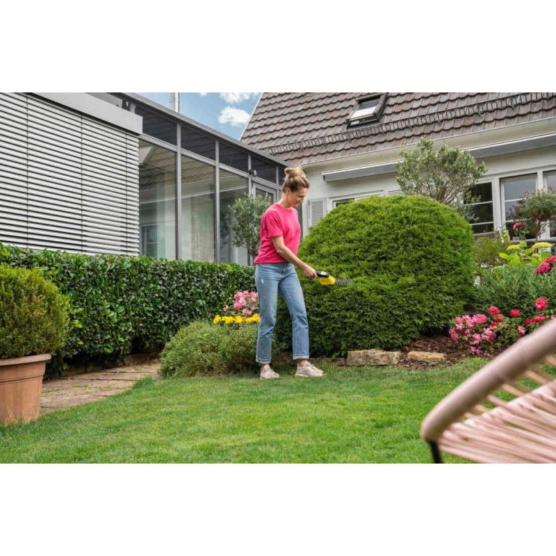 Die Grasschere KARCHER GSH 4-4 Plus 1.445-320.0 ermöglicht die Bearbeitung einer Fläche von bis zu ca. 450 Quadratmetern (2,5 Ah) beim Strauchschnitt und sogar bis zu 600 Quadratmetern (2,5 Ah) beim Rasenmähen mit einer einzigen vollen Akkuladung.