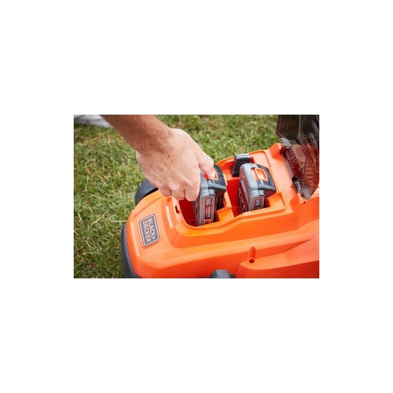 - Dieser Rasenmäher wird ohne Akku geliefert, ist jedoch mit allen 18-V-Akkus und BLACK+DECKER POWERCONNECT™-Geräten kompatibel