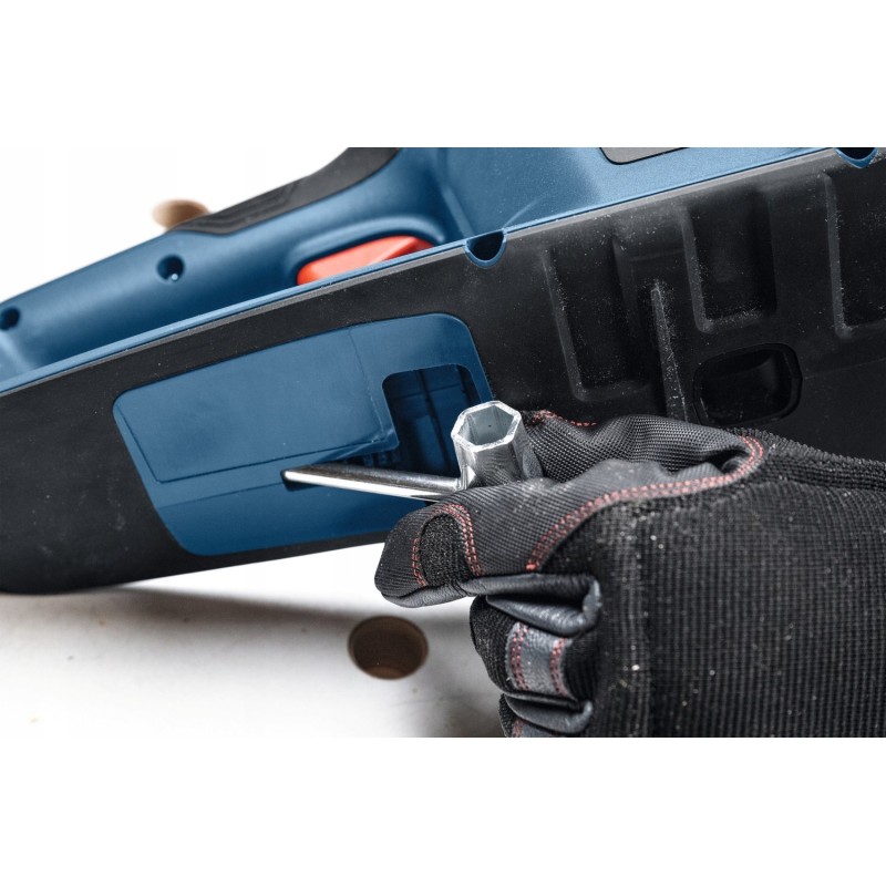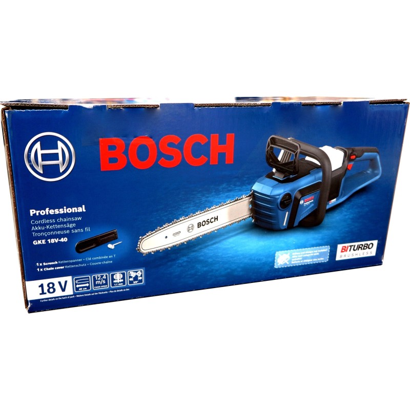 - Lieferumfang: BOSCH GHE 18V-60 Säge, Führungsschiene, Schlüssel zur Kettenspannung
