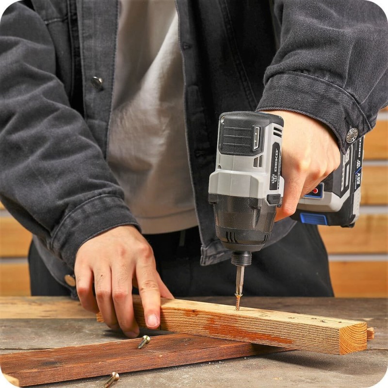 Mit einem Drehmoment von bis zu 320 Nm wurde der 20-V-Akku-Bürstenlos-Schrauber DEKO DKID20BL01 für die einfache Handhabung bei verschiedenen Befestigungsarbeiten entwickelt. Der Schlagmechanismus sorgt für ein hohes Drehmoment, jedoch mit geringer Rückkopplung über den Griff, was für mehr Komfort und Sicherheit sorgt. Der Schrauber verfügt über 3 Drehzahlstufen, die drei Drehmomenteinstellungen entsprechen. Die drei Drehmomenteinstellungen mit intelligentem automatischem Stoppmodus optimieren die Arbeit und verhindern ein übermäßiges Lösen oder Beschädigen der Gewinde. |
