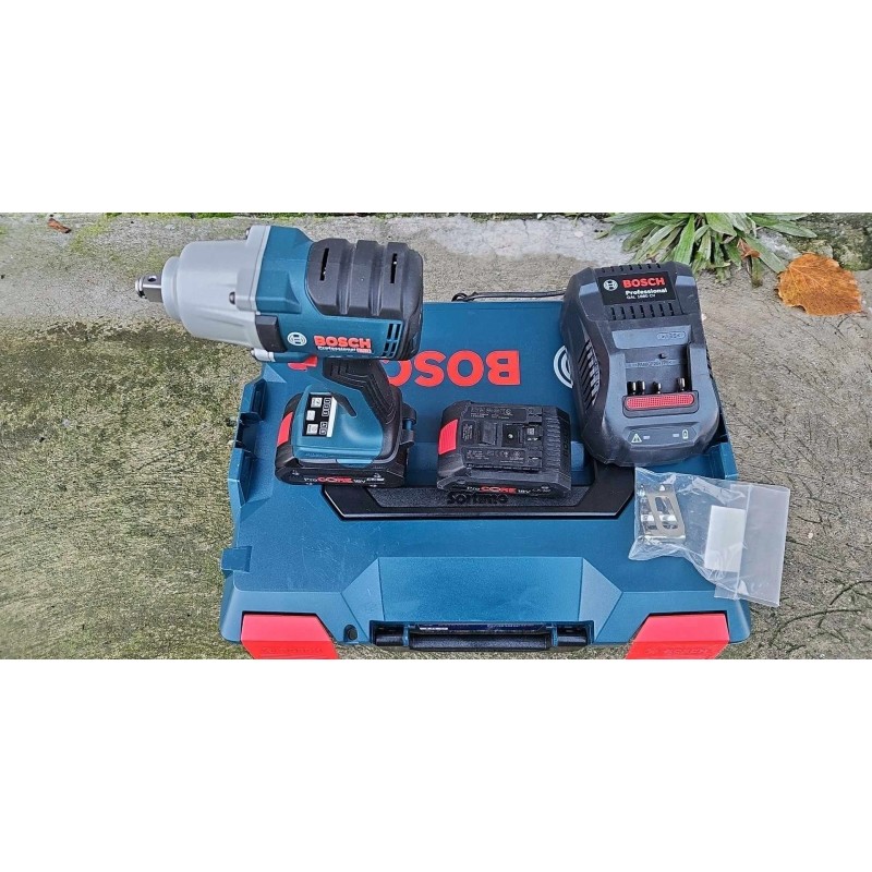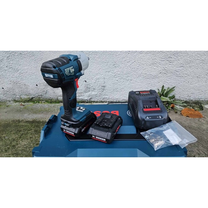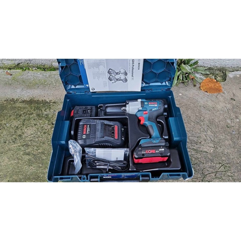 Bosch GDS 18V-450 HC Professional. Produkttyp: Schlagschrauber, Griffform: Pistolengriff, Griffdurchmesser: 1/2". Leerlaufdrehzahl (max.): 2300 U/min, Leerlaufdrehzahl (zweiter Gang): 1500 U/min, Leerlaufdrehzahl (dritter Gang): 2300 U/min. Stromquelle: Akku, Akkuspannung: 18 V, Akkutechnologie: Lithium-Ionen (Li-Ion). Produktbreite: 77 mm, Produkttiefe: 169 mm, Produkthöhe: 214 mm. Anzahl der Akkus im Lieferumfang: 2 Stück.