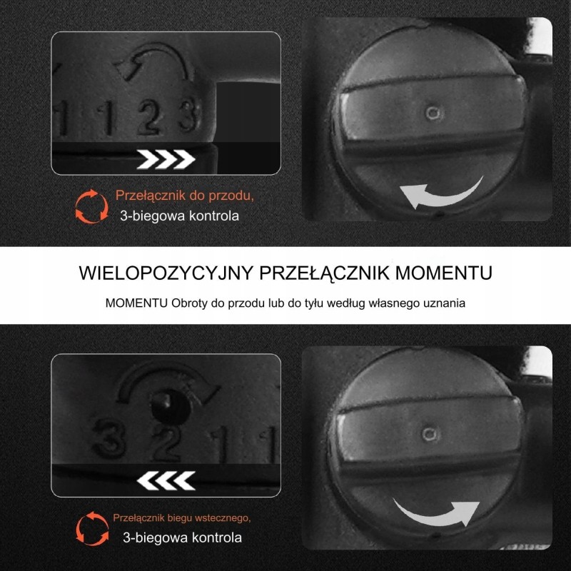 Vorwärts-/Rückwärtsschalter sowie 6-stufige Drehzahl- und Drehmomenteinstellungen, die sich an verschiedene Anwendungen anpassen.