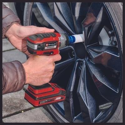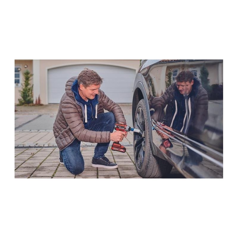 Er ist die ideale Ergänzung für die Wartung des privaten Fuhrparks. Anstatt Zeit und Energie für den Reifenwechsel im Frühjahr und Herbst aufzuwenden, lassen sich mit diesem praktischen Helfer die Radmuttern im Handumdrehen lösen. Der leistungsstarke Schlagschrauber ist eine komfortable Alternative zum mühsamen manuellen Lösen. Dank des bürstenlosen Motors bietet der Schlagschrauber mehr Leistung und eine längere Laufzeit als ein herkömmlicher Motor mit Kohlebürsten. Der Akku-Schlagschrauber gehört zur Power X-Change-Familie: Der Akku mit hochwertiger Lithium-Ionen-Technologie und das Ladegerät sind bei allen Power X-Change-Modellen einsetzbar. Der Vorteil liegt auf der Hand: Dank der neuen, leistungsstarken und langlebigen Generation der Einhell-Akku-Werkzeuge gehören Stromkabel und unerwünschte Ablenkungen durch eingeschränkte Bewegungsfreiheit der Vergangenheit an. Dies ermöglicht schnelles und sicheres Arbeiten rundum.