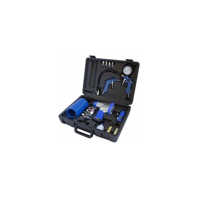 DRUCKLUFT-SET: SCHLAGSCHRAUBER + SCHLEIFMASCHINE + PISTOLEN + ZUBEHÖR
