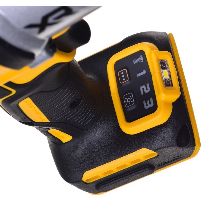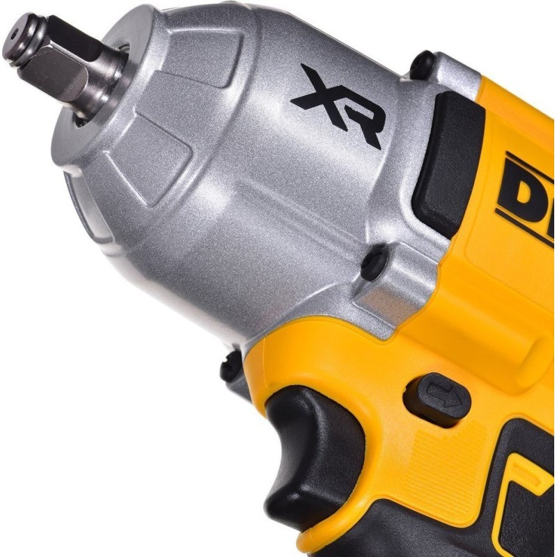 Precision Wrench-Modus – Gewährleistet hohe Kontrolle beim Anziehen: Nach Erreichen des Einschaltmoments hält das Gerät für 0,5 Sekunden an. Anschließend arbeitet es mit einer Schlagzahl von bis zu 2300 Schlägen/Minute, was eine vollständige Kontrolle über den Anziehvorgang ermöglicht und das Risiko eines Gewindebruchs verringert. Im Rückwärtslauf steht das maximale Drehmoment von Beginn an zur Verfügung. Sobald der Schlagmodus ausgeschaltet wird, begrenzt das Gerät den Rückwärtslauf, um ein „Wegrutschen“ der Verbindungselemente zu verhindern. Bemerkenswert ist der neue Akkuanschluss, der so konzipiert ist, dass Vibrationen und Stöße auf den Akku während des Betriebs minimiert werden. Diese Lösung verringert das Risiko einer Abnutzung des Ladeanschlusses. Der Arbeitsbereich wird von einer LED mit zwei Leuchtintensitäten beleuchtet, wobei die Lichtquelle ausgeschaltet werden kann. Der Griff und der hintere Teil des Gehäuses sind mit Gummi überzogen, was für einen sicheren und bequemen Halt sorgt. Der Schlagschrauber DCF900 ist mit allen 18-V-Li-Ion-Akkus der Serien XR, FlexVolt und PowerStack kompatibel.
