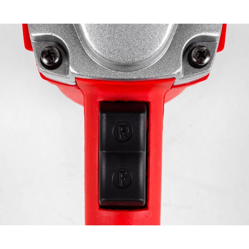 Der Schraubenschlüssel ist mit einem intuitiven Umschalter ausgestattet, der eine einfache Änderung der Drehrichtung mit einer Hand ermöglicht. Diese praktische Lösung erhöht den Bedienkomfort und sorgt für mehr Effizienz bei der Arbeit.