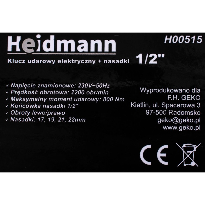 Heidmann Schlagschrauber Elektrischer Schlagschrauber 1/2" + Steckschlüsseleinsätze Typ H(5)
