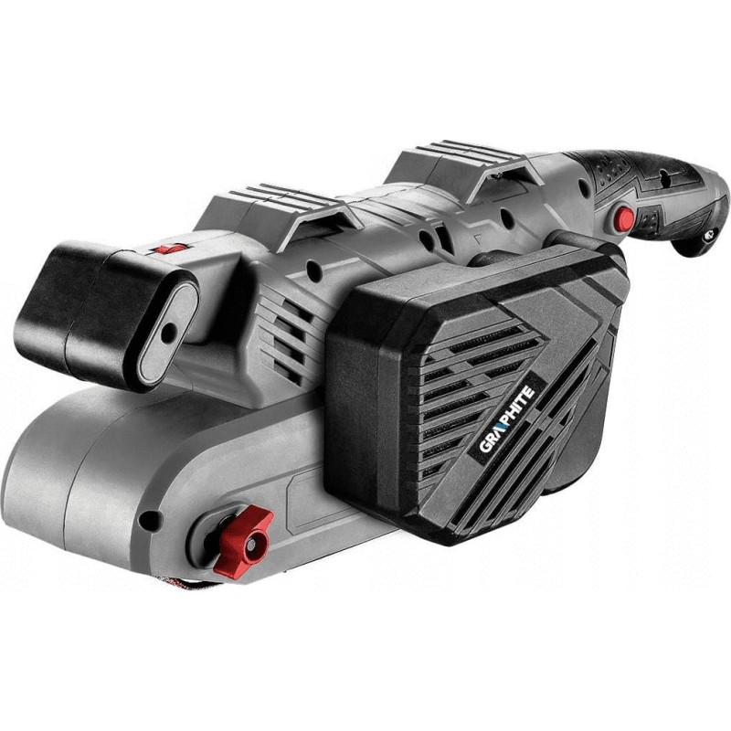 Die Spezial-Bandschleifmaschine GRAPHITE mit einer Leistung von 900 W ist für die Bearbeitung von Holz und holzähnlichen Materialien, Metall und Kunststoffen vorgesehen. Das Gerät zeichnet sich durch eine ergonomische Form und ein modernes Design aus und verfügt über eine rutschfeste Auflage am Haupt- und am Zusatzgriff. Ein Vorteil des Schleifers ist die Halterung zur Befestigung des Geräts am Tisch. Dies erhöht den Komfort und die Bewegungsfreiheit des Bedieners erheblich. In stationärer Position eignet sich das Gerät zum Schleifen kleiner Holzelemente wie Möbelgriffe, kurze Leisten oder eigene Handwerksarbeiten. Die Führungsrolle der Schleifmaschine besteht aus einer hitze- und verschleißfesten Aluminiumlegierung. Darüber hinaus verfügt das Gerät über eine Schalterarretierung für Dauerbetrieb und ist mit einem integrierten Staubabsaugsystem mit abnehmbarem Behälter ausgestattet, das den Raum vor Verschmutzung schützt. Die maximale Bandgeschwindigkeit beträgt 400 Meter pro Minute.