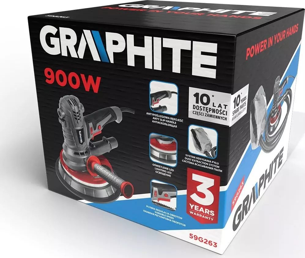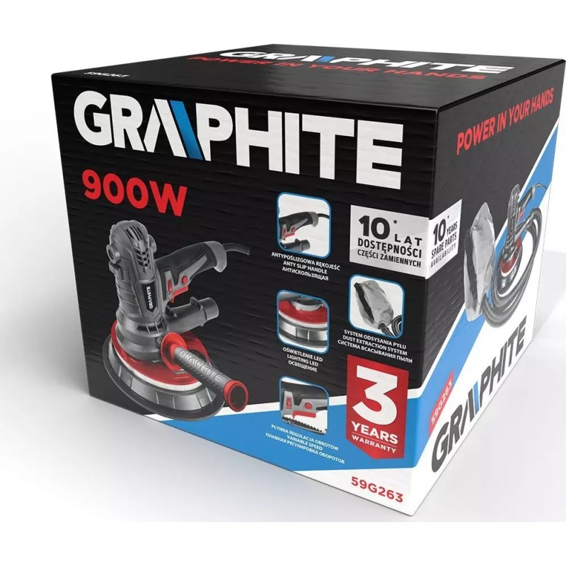 Graphite Gipsschleifer 900 W, 180 mm, LED 59G263