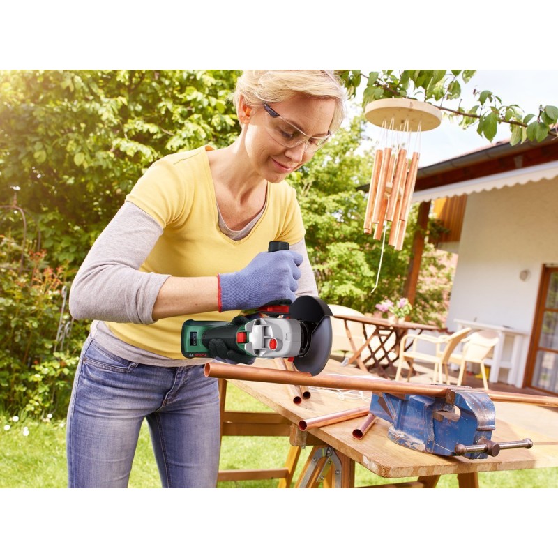 Komfortabler und handlicher Akku-Winkelschleifer, der sich durch optimale Manövrierbarkeit auszeichnet und für verschiedene Heimwerkerarbeiten geeignet ist