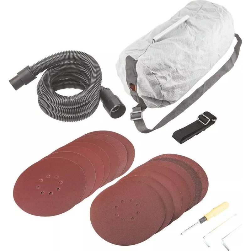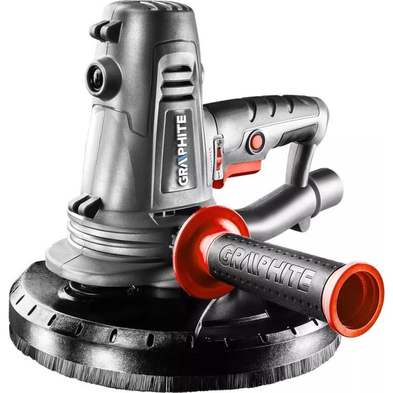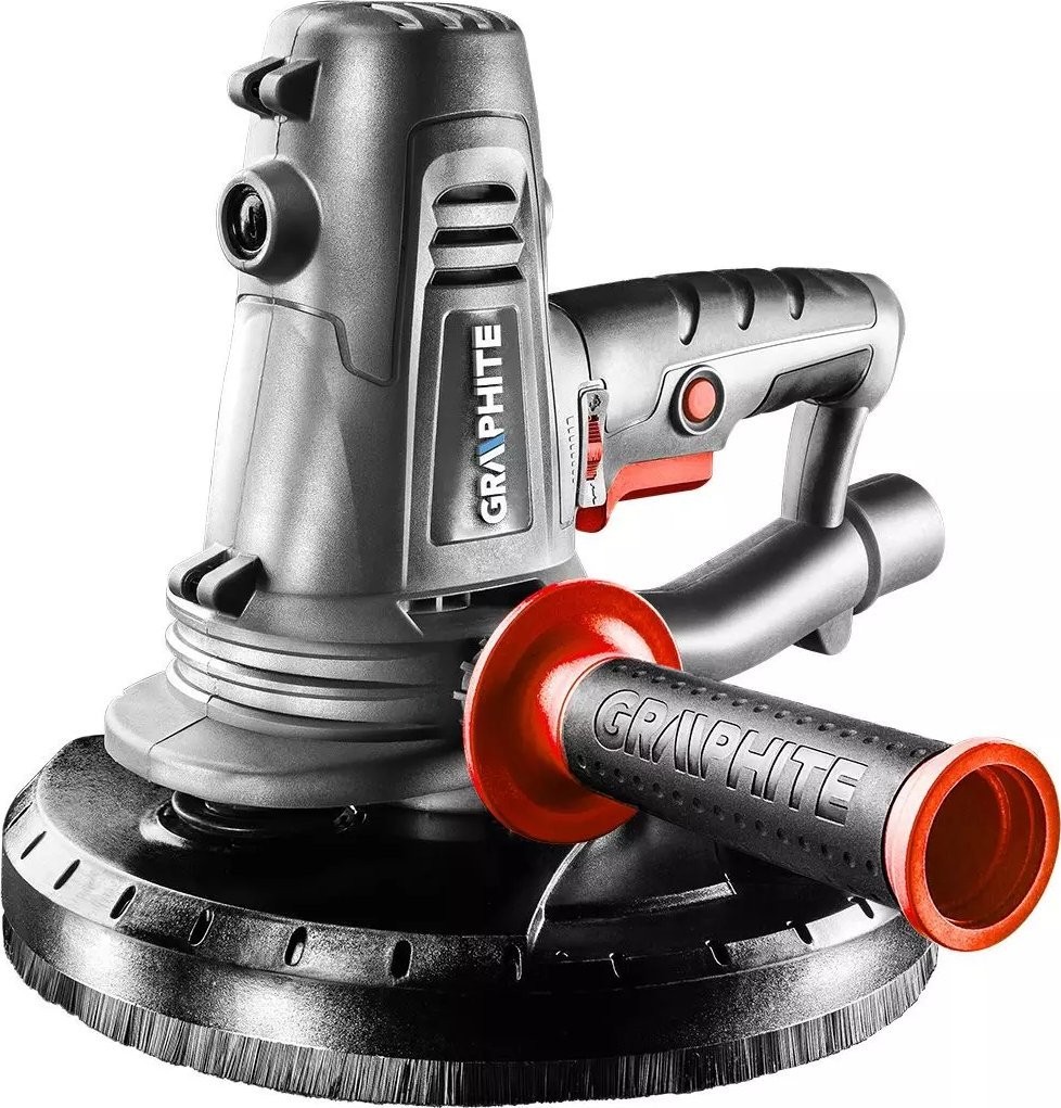 Hochwertiger GRAPHITE-Gipsschleifer (Art.-Nr. 59G262) mit 1050 W Leistung, bestimmt für die präzise Bearbeitung von Gipsoberflächen. Die Schleifmaschine ist mit einem Direktantrieb der Schleifscheibe ausgestattet – ohne Zwischenwelle. Sie verfügt über eine stufenlose Drehzahlregelung des Schleifkopfes im Bereich von 800 bis 2300 Umdrehungen pro Minute. Die Schleifscheibe hat einen Durchmesser von 225 mm. Das Staubabsaugsystem mit der Möglichkeit, einen Staubbeutel oder einen Staubsaugeranschluss direkt anzuschließen, sorgt für Ordnung am Arbeitsplatz. Darüber hinaus ist die Schleifmaschine mit einem zusätzlichen beidseitigen Handgriff ausgestattet. Am Hauptgriff befinden sich Schutzpolster aus Gummi, die Komfort und Stabilität beim Schleifen gewährleisten. Aus Sicherheitsgründen ist die Schleifscheibe mit einer Bürstenschutzhaube abgedeckt. Der Austausch von abgenutztem Schleifpapier erfolgt blitzschnell, da es mit einem Klettverschluss befestigt ist. Der Gipsschleifer verfügt über ein 5 m langes Netzkabel. Es besteht die Möglichkeit, abgenutzte Kohlebürsten selbst auszutauschen. Im Lieferumfang der Schleifmaschine sind enthalten: Schleifpapier (2x P80, 2x P120, 2x P150, 4x P180, 4x P240), ein Absaugschlauch, ein Schultergurt und ein Staubbeutel. Die Konformität mit den europäischen Normen wird durch das CE-Zertifikat gewährleistet.