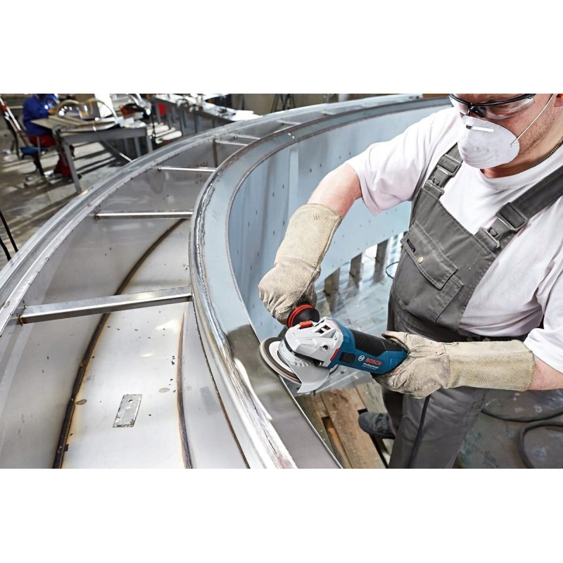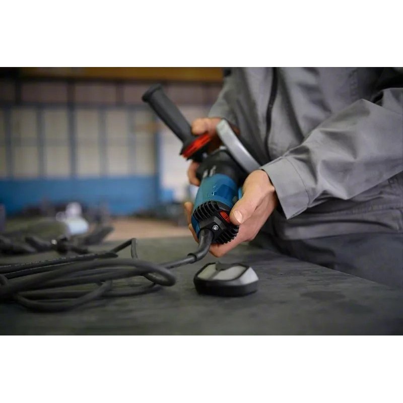 Der Bosch-Schleifer GWS 17-125 S INOX verfügt über einen ergonomischen Griff mit VIBRATION CONTROL-System, das Vibrationen während des Betriebs deutlich reduziert. Dadurch profitiert der Anwender von mehr Komfort, selbst bei längerem Einsatz des Werkzeugs.