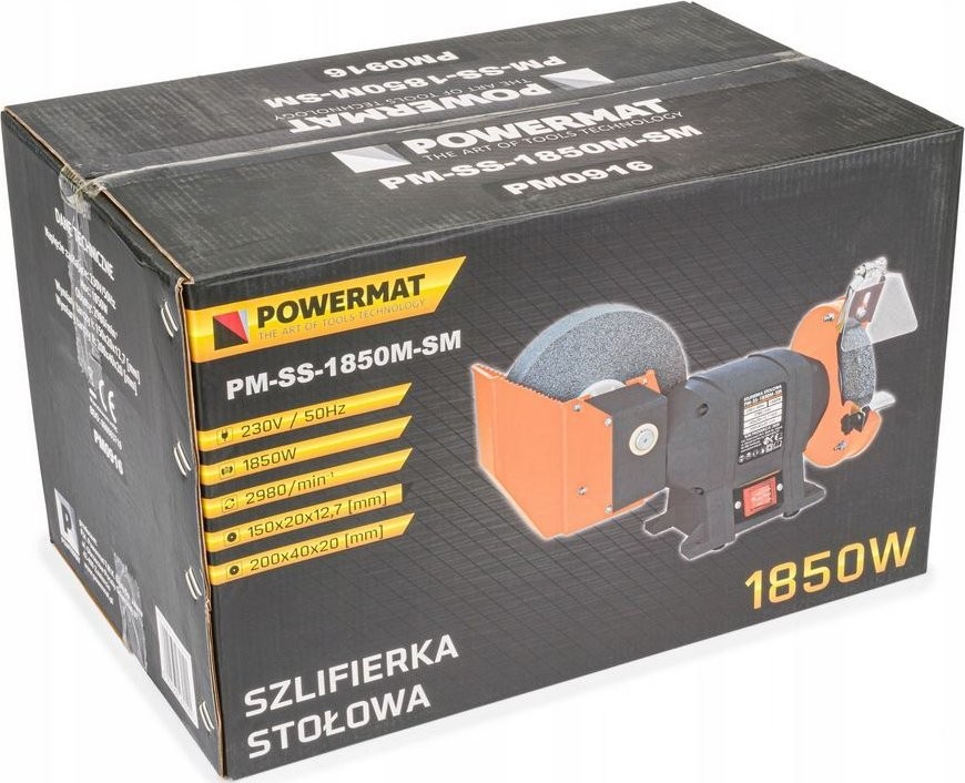 Powermat-Schleifmaschine Tischschleifmaschine 1850 W, 2 Schleifscheiben (Trocken- und Nassschliff) Powermat PM-SS-1850M-SM