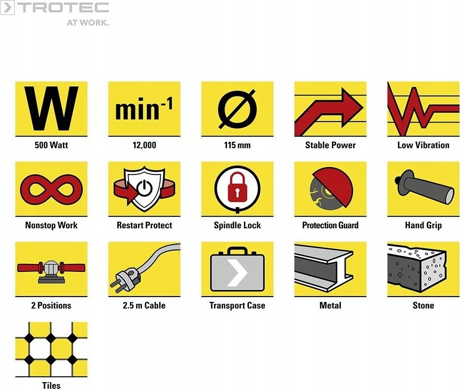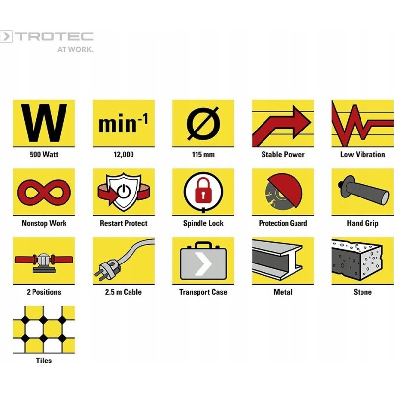- Artikelname: TROTEC Bohrschrauber PAGS 10-115 (500 W) inklusive Koffer und 115-mm-Trennscheibe, 12.000/min, zusätzlicher Wechselgriff