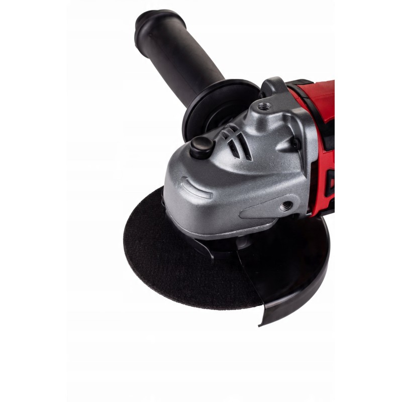 Im Lieferumfang enthalten sind der Winkelschleifer, ein Seitengriff, ein Schlüssel zum Scheibenwechsel, eine Scheibenschutzhaube, ein Lagergehäuse, eine Schraube, eine Sicherungsmutter sowie eine Bedienungsanleitung. Bitte beachten Sie jedoch, dass der Winkelschleifer ohne Akkus und Ladegerät verkauft wird.