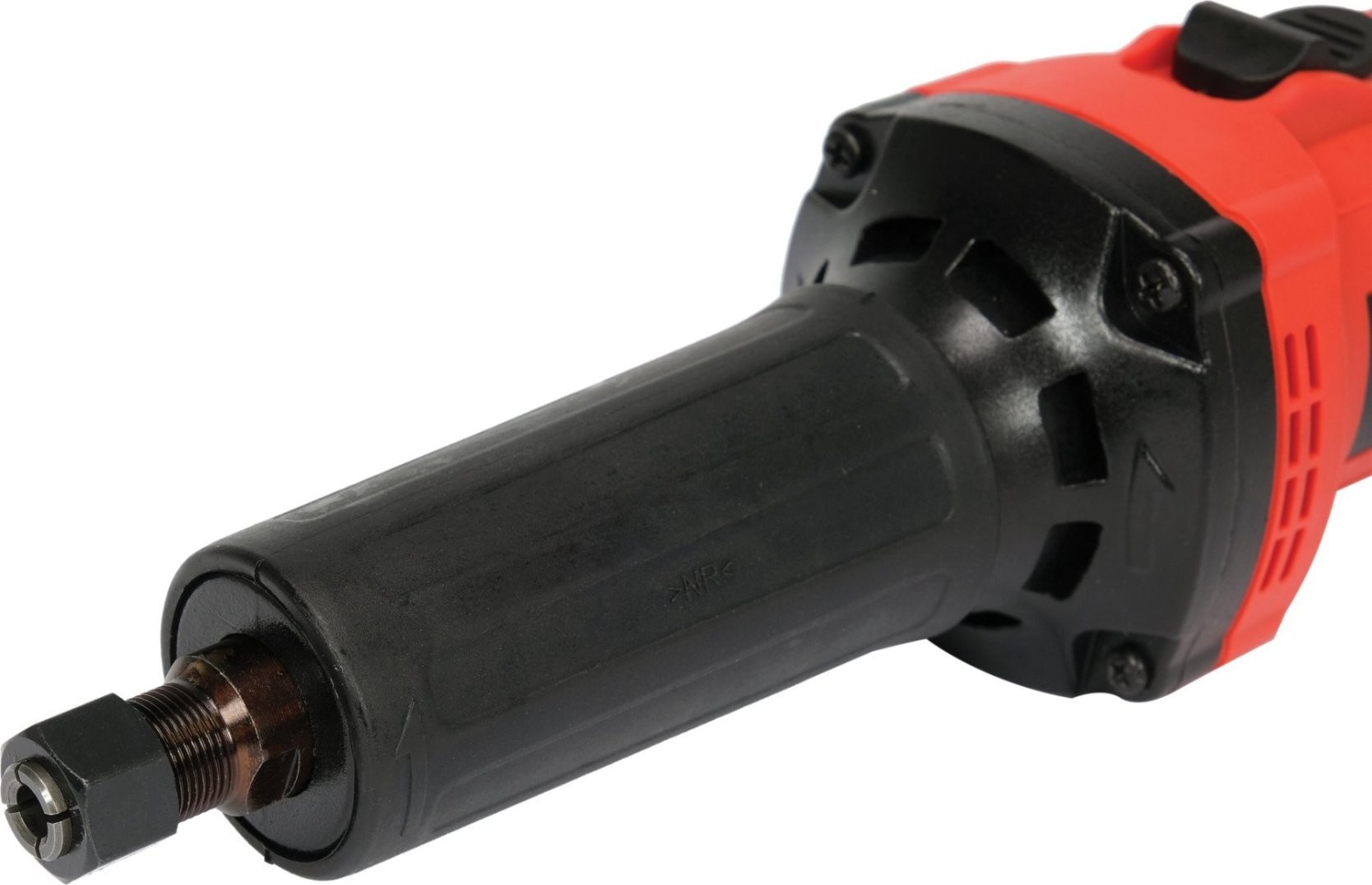 Geradschleifer für die Metallbearbeitung. Er findet Anwendung in Karosserie- und Lackierwerkstätten sowie in Reifenwerkstätten und eignet sich zudem zum Entgraten von Rohrkanten und zum Anfasen von Metallkanten.
