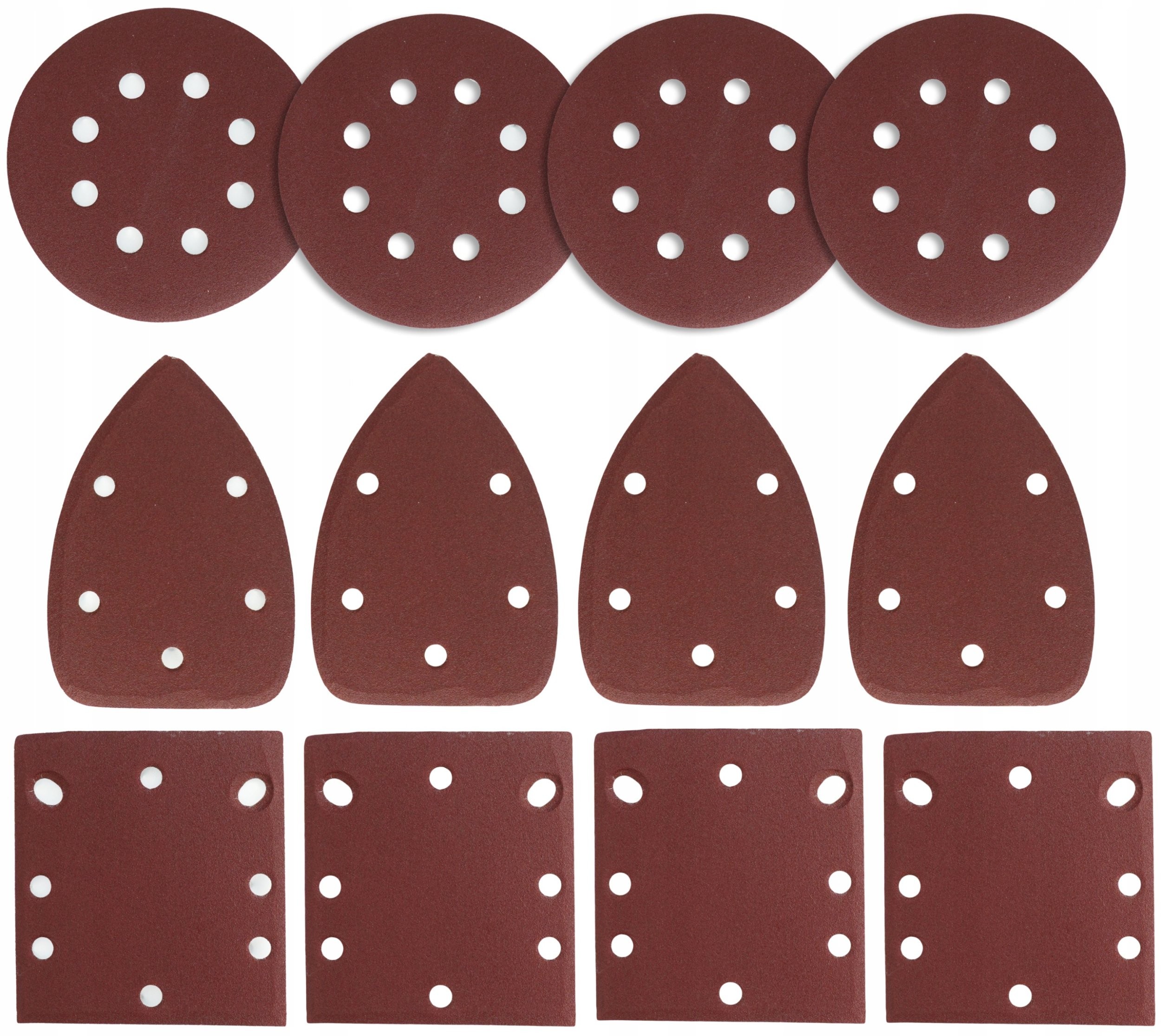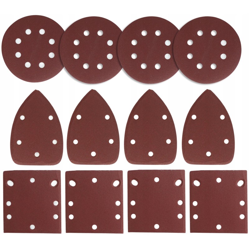 Im Lieferumfang sind drei austauschbare Schleifscheiben enthalten: eine runde (125 mm), eine Delta-Scheibe (80 x 105 x 100 mm) und eine rechteckige (110 x 100 mm). Dank dieser Scheiben passt sich der Schleifer an die Besonderheiten jeder Aufgabe an, was ihn zu einem äußerst vielseitigen Werkzeug macht.