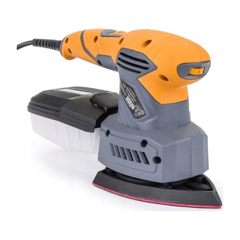 Für multifunktionales Schleifen – exzentrisch und oszillierend – bietet die Schleifmaschine die Möglichkeit, 3 verschiedene Schleifpads zu montieren (orbital – zum Schleifen flacher Oberflächen; dreieckig – zum Schleifen unebener Oberflächen; rechteckig – zum Schleifen von Ecken und Kanten).