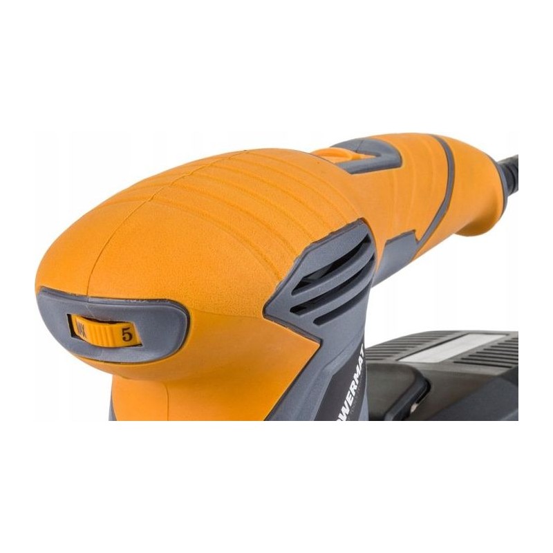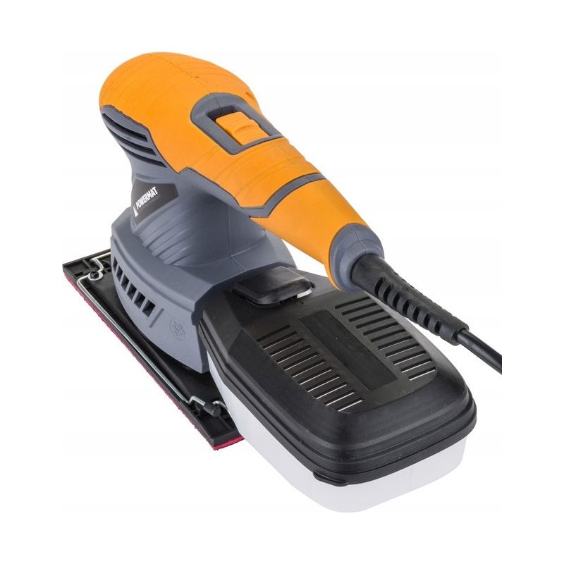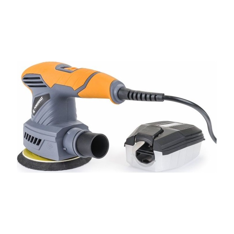Für maximalen Komfort und Sicherheit bei der Anwendung ist der Schleifer mit einem speziellen, gummibeschichteten, rutschfesten Griff ausgestattet. Die exzentrische Bewegung sorgt für einen gleichmäßigen Abtrag des Werkstücks ohne Rillen und Unebenheiten. Die Drehzahl lässt sich über einen Drehknopf an der Oberseite der Schleifmaschine einstellen. Die Schleifmaschine ist so konzipiert, dass sie sowohl von Rechts- als auch von Linkshändern verwendet werden kann.
