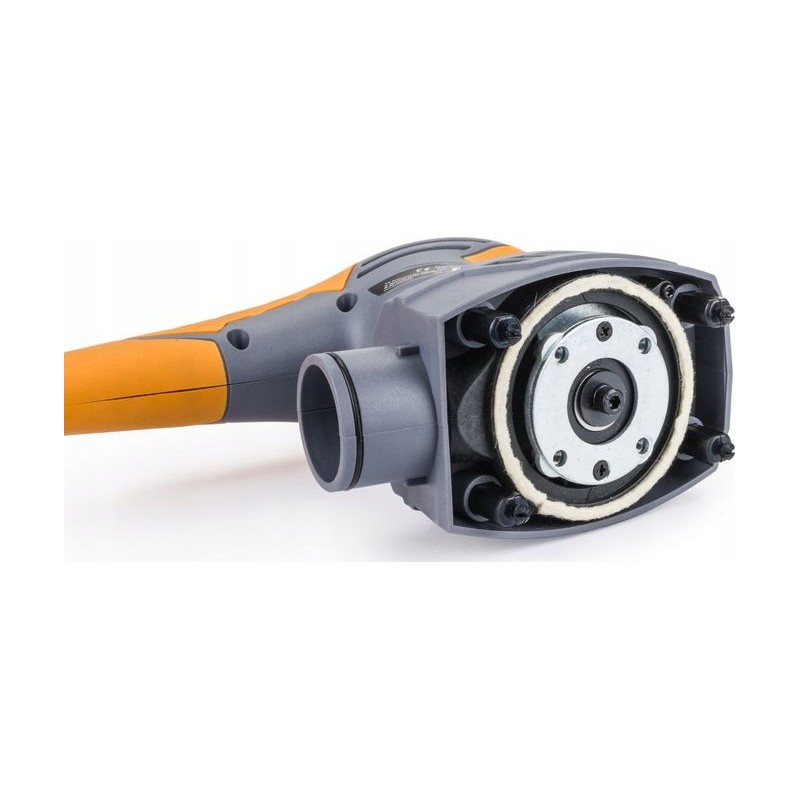 Um die Präzision beim Schleifen zu erleichtern, wurde der gummierte, freistehende Griff im Verhältnis zur Achse des Exzenterkopfes entsprechend ausbalanciert, was einen idealen senkrechten Anpressdruck auf die Oberfläche ermöglicht.