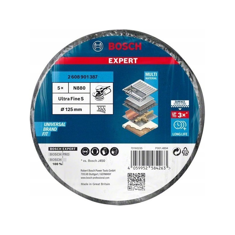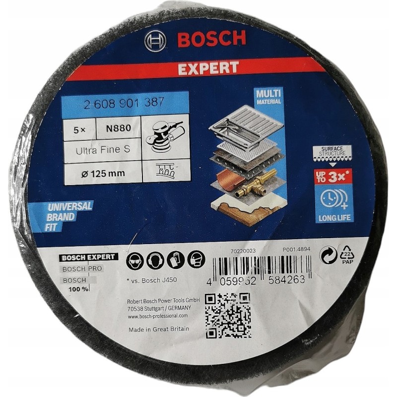 Bosch Expert Schleifmaschine, Vlies-Schleifscheibe N880, ultrafein, 125 mm, Schleifblatt (grau, 5 Stück, für Exzenterschleifer)