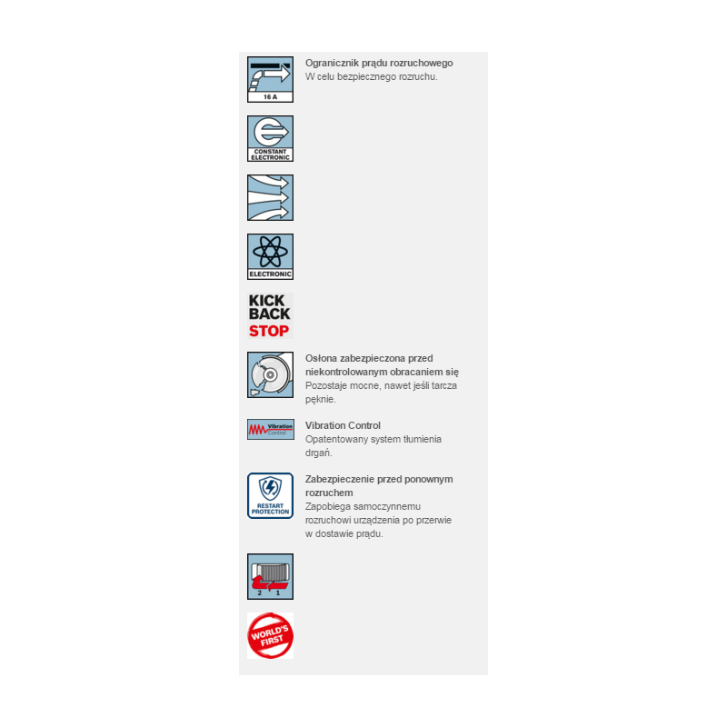 - Zusatzhandgriff mit Vibration Control-System reduziert die Vibrationen um bis zu 40 % und ermöglicht ermüdungsfreies Arbeiten (EN 60745)