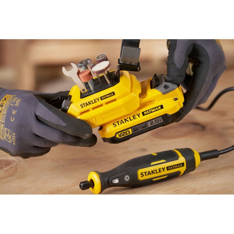 Stanley-Schleifmaschine – Akku-Mini-Schleif- und Gravurmaschine mit 33-teiligem Zubehörset SFMCE030B-XJ – Leistung und Mobilität in einem