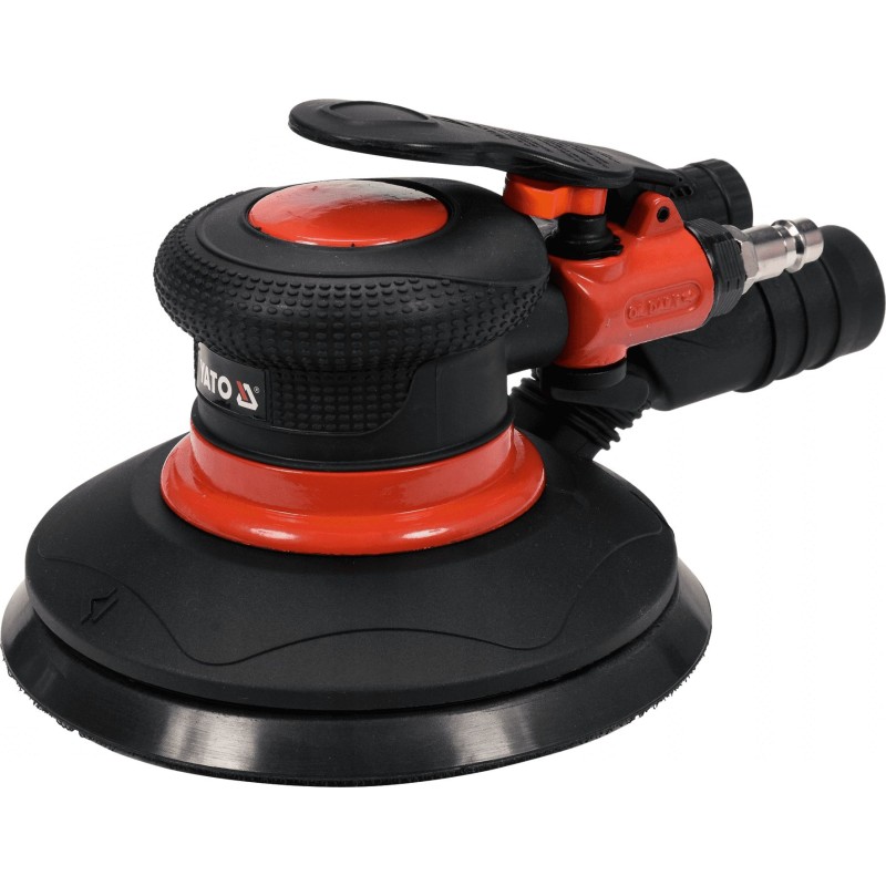 Professioneller pneumatischer Exzenterschleifer der Marke YATO, der mit Druckluft betrieben wird.
