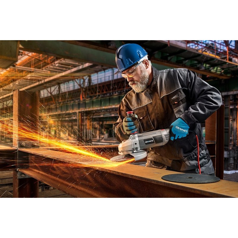 Der Winkelschleifer funktioniert dank seiner einfachen und zugleich zuverlässigen Konstruktion. Ein spezieller Mechanismus versetzt die Scheibe in eine Drehbewegung. Dadurch eignet sich dieses Elektrowerkzeug hervorragend zum Schneiden von Metall-, Holz- und Keramikelementen sowie sogar von Steinen oder Kunststoffen. Mit der richtigen Auswahl der Scheibe eignet sich der Winkelschleifer für viele Renovierungs-, Werkstatt- und Blecharbeiten. Die vielseitige Verwendbarkeit ist einer der wichtigsten Vorteile.