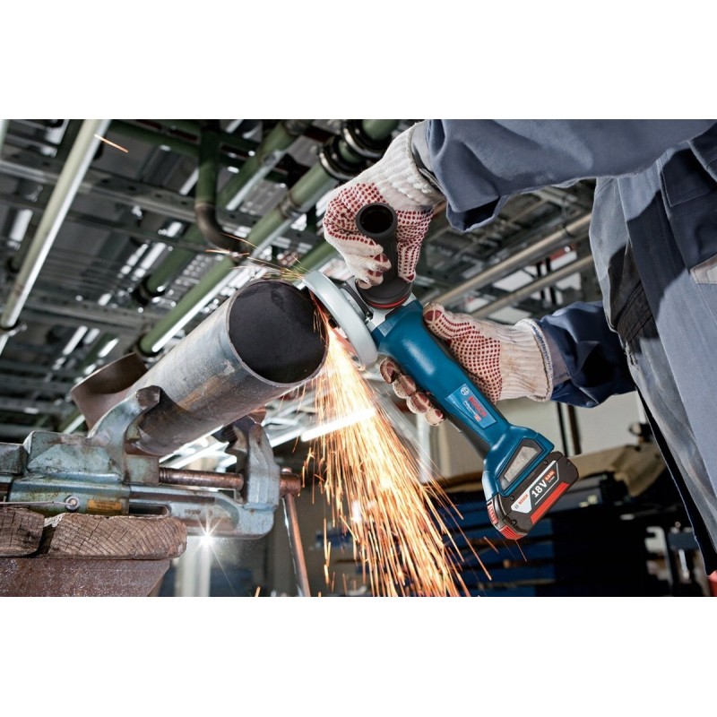 Der Winkelschleifer GWS 18V-10 P ist genauso leistungsstark wie typische 125-mm-Netzschleifer, dabei aber handlicher, leichter und unabhängiger, da er kein Netzkabel hat